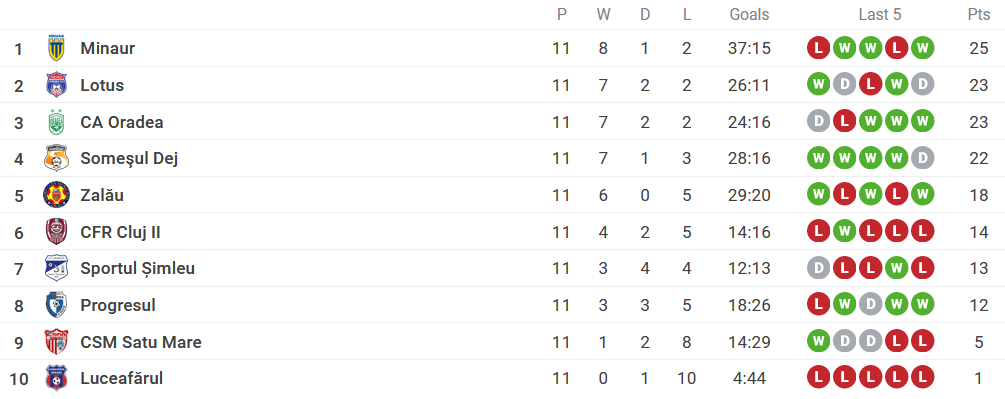 Minaur Baia Mare primește vizita Progresului Șomcuta Mare în etapa a XII-a din Liga 3, seria 10, după ce în urmă cu o săptămână a zdrobit în deplasare Luceafărul Oradea cu 12-0. Partida se anunță una echilibrată, chiar dacă minerii pornesc drept favoriți pe hârtie. Șomcuta Mare a reușit să acumuleze 10 puncte din 12 posibile în ultimele patru etape și pare că și-a găsit într-un final ritmul de joc dorit. Fotbaliștii antrenați de Ciprian Danciu au avut evoluții oscilante în ultima lună, dar Minaur rămâne totuși cea mai valoroasă formație din seria 10.