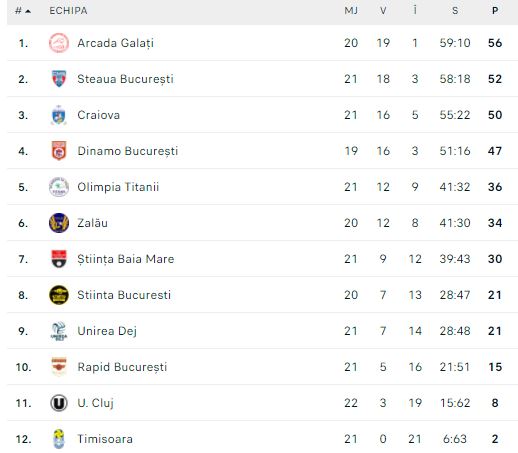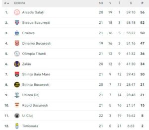 Clasament Divizia A1: