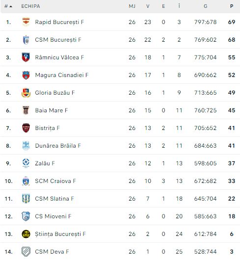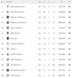Clasament final Liga Florilor