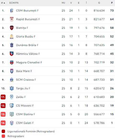 Clasament Liga Florilor