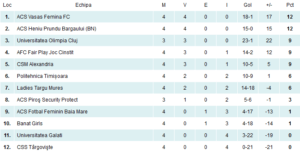 Cu toate că a pierdut, ACS Baia Mare urcă o treapă în clasament după această etapă, depășind formația Banat Girls la golaveraj.