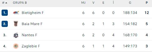 Clasamentul final al grupei B: