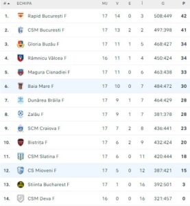 Clasament Liga Florilor: