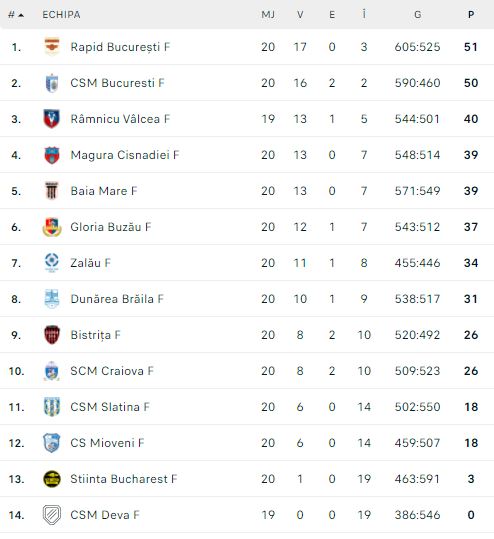 - Rapid București – Dacia Mioveni: 31-23
